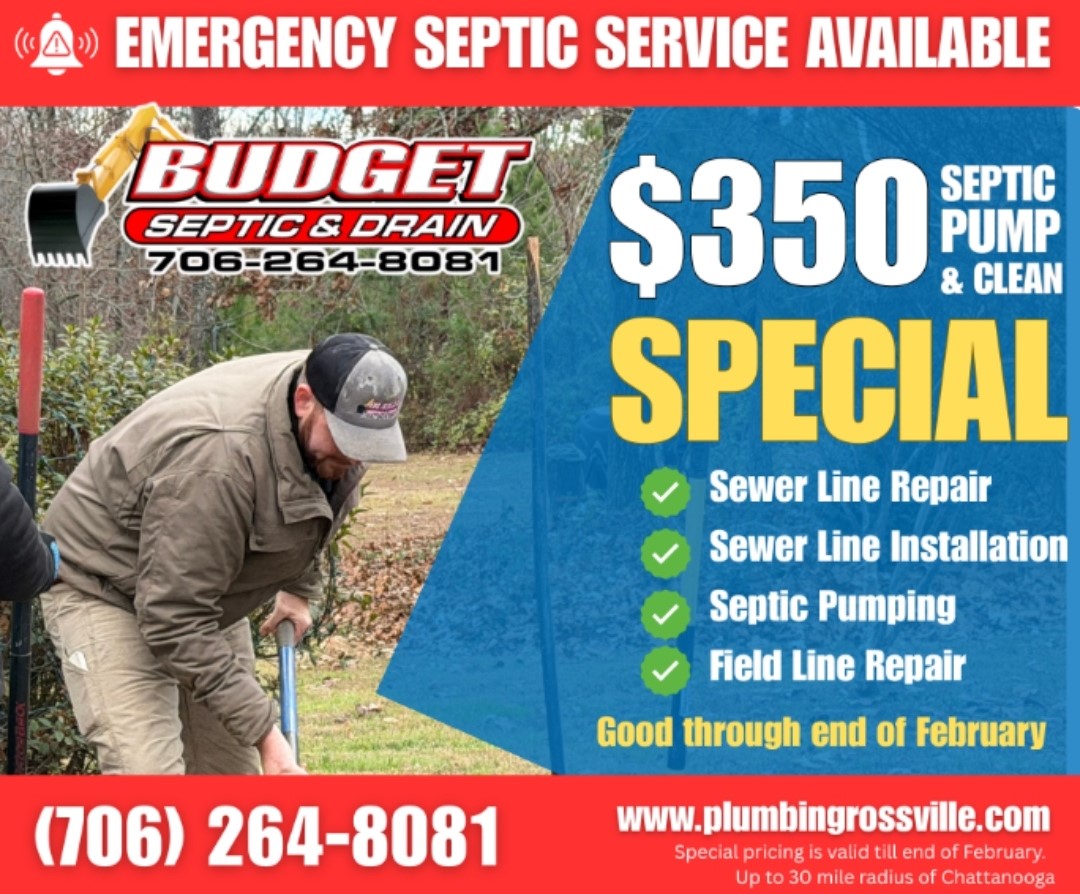 Budget Septic and Drain Services is a reliable provider of plumbing services in the Rossville, GA, Hamilton County, and Tennessee area. Our plumbers can handle all your plumbing and septic system service needs in one place, ensuring that one appointment can get your plumbing working perfectly.